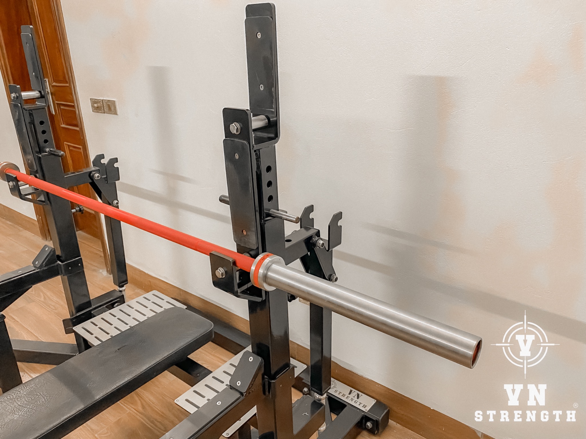 Để phù hợp với chủ đề về tính linh hoạt và chức năng trong toàn bộ thiết kế, bạn có thể tùy chỉnh thiết lập theo vóc dáng cá nhân của mình bằng cách điều chỉnh tay đòn an toàn về cả chiều cao và chiều sâu. Giá đỡ thanh tạ tích hợp một con lăn thép để bạn có thể trượt thanh tạ vào đúng vị trí cho lần nâng tiếp theo trong khi lớp nhựa nhiệt dẻo cứng ở mặt sau bảo vệ các khía của thanh tạ không bị xếp lại theo thời gian.