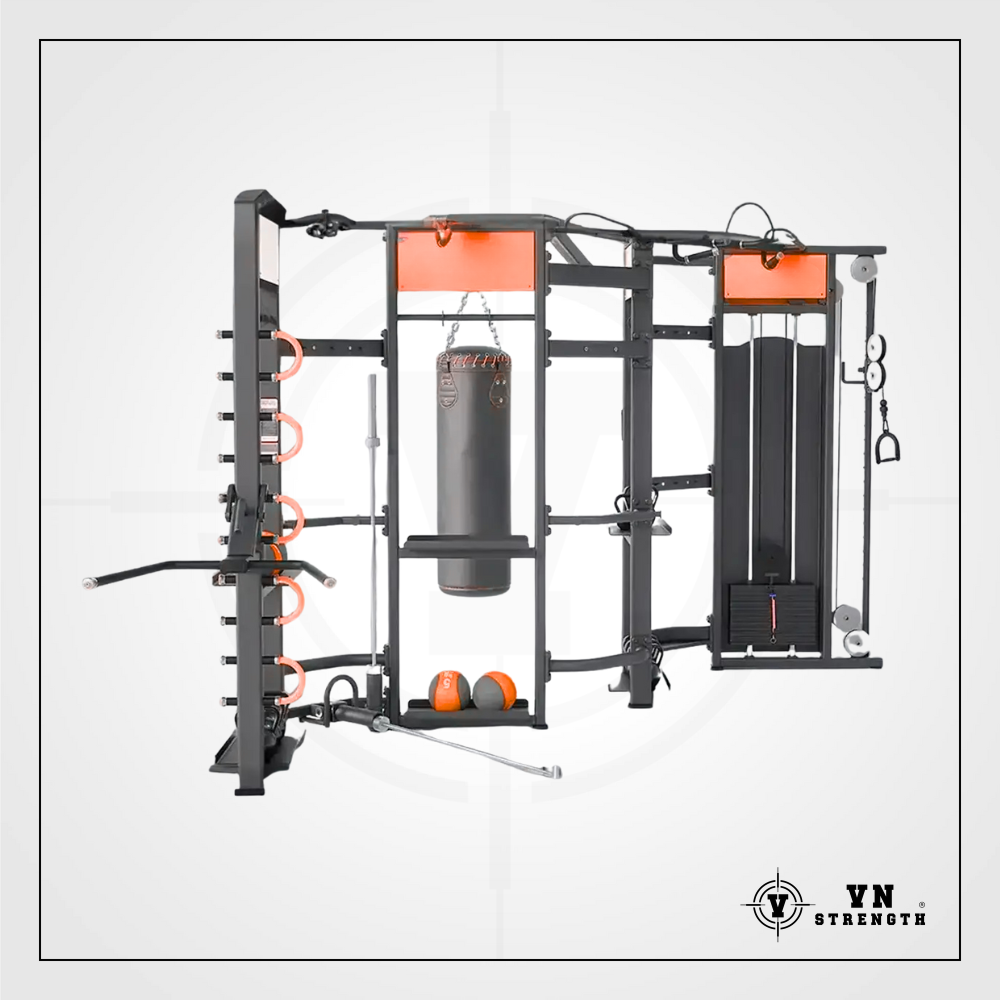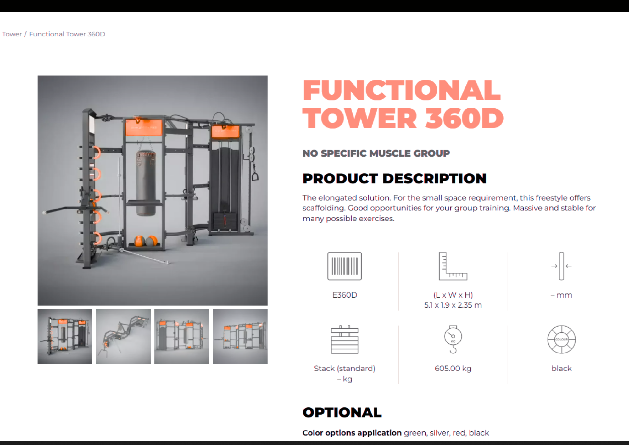 Giải pháp kéo dài. Đối với nhu cầu không gian nhỏ, máy tập tự do này có giàn giáo. Cơ hội tuyệt vời cho việc tập luyện nhóm của bạn. Rộng rãi và ổn định cho nhiều bài tập. E360D (D x R x C) 5,1 x 1,9 x 2,35 m – mm Stack (tiêu chuẩn) – kg 605,00 kg đen