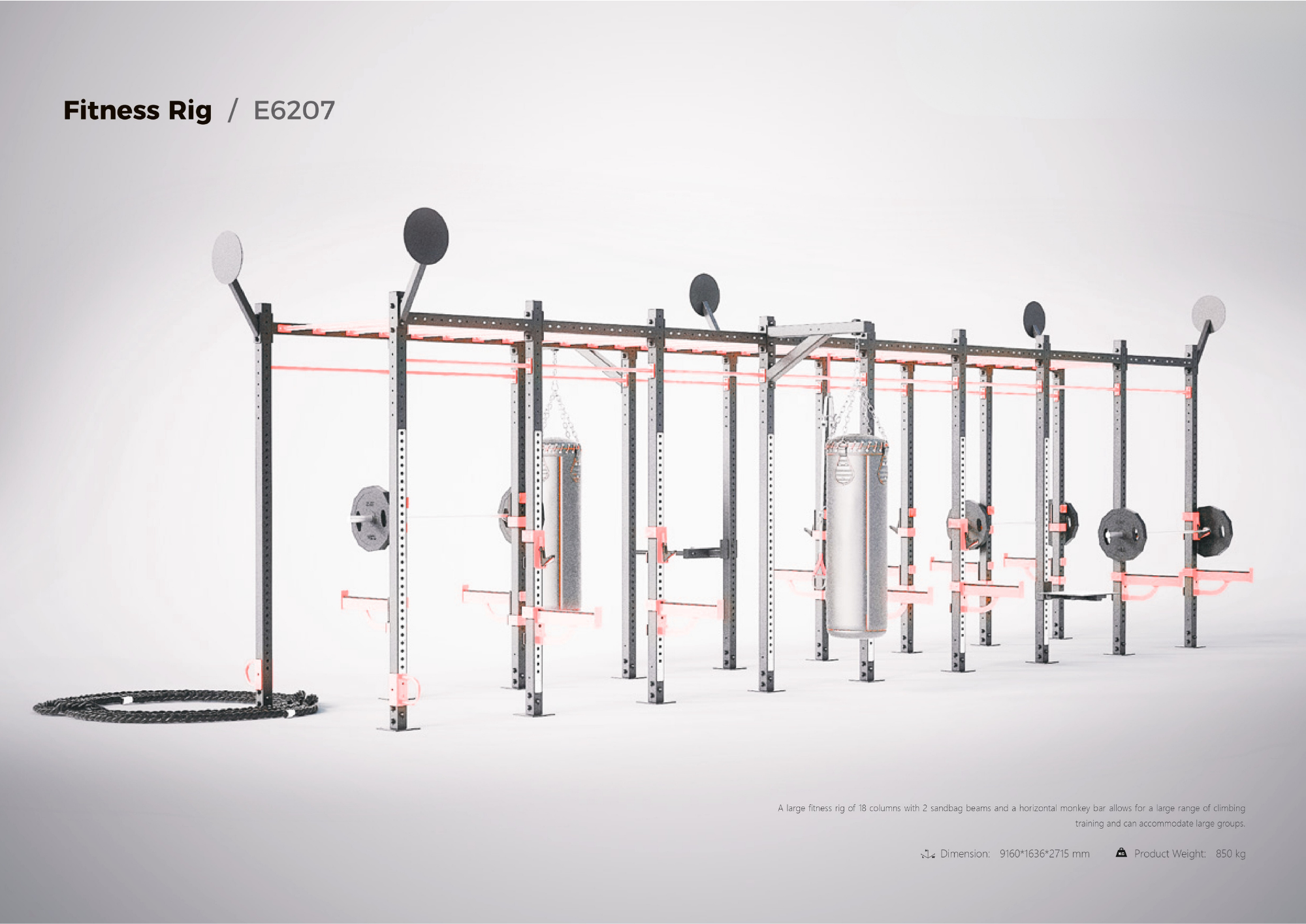 Giàn tập thể dục tự đứng là giải pháp hoàn hảo. Nhờ thiết kế ổn định của VN-Strength ® Fitness, Giàn tập thể dục cung cấp nền tảng hỗ trợ vững chắc cho mọi nhu cầu tập luyện nhóm. Chân đế thép 80x80mm đảm bảo độ cứng cáp đặc biệt, giúp giảm thiểu độ rung lắc của Giàn tập thể dục trong quá trình tập luyện thực tế. Khoảng cách lỗ hợp lý giúp dễ dàng điều chỉnh và sử dụng theo tiêu chuẩn. Nếu bạn có không gian, giàn tập tự do này sẽ là lựa chọn hoàn hảo cho việc tập luyện nhóm của bạn. Gửi email cho chúng tôi Chi tiết sản phẩm Đặc trưng Dòng E6000 - Giàn tập thể dục tự đứng là giải pháp hoàn hảo. Nhờ thiết kế ổn định của VN-Strength ® Fitness, Giàn tập thể dục cung cấp nền tảng hỗ trợ vững chắc cho mọi nhu cầu tập luyện nhóm . Chân đế thép 80x80mm đảm bảo độ cứng cáp đặc biệt, giúp giảm thiểu độ rung lắc của Giàn tập thể dục trong quá trình tập luyện thực tế. Khoảng cách lỗ hợp lý giúp dễ dàng điều chỉnh và sử dụng tiêu chuẩn. Nếu bạn có không gian, giàn tập tự do này sẽ là lựa chọn hoàn hảo cho việc tập luyện nhóm của bạn . Thiết bị tập thể dục 6205 ● E6205 -- 16 cột thẳng đứng cung cấp khả năng mở rộng linh hoạt và thanh xà cong giúp đa dạng hóa bài tập luyện. Luyện tập nhóm , bao gồm tất cả các hình thức thể dục trong môi trường nhóm, thường được hướng dẫn bởi huấn luyện viên cá nhân hoặc huấn luyện viên nhóm. Huấn luyện viên sẽ đồng hành cùng một người chuyên nghiệp để đảm bảo việc tập luyện an toàn và hiệu quả. Ngoài việc giúp người tập giảm cân, giảm nguy cơ mắc bệnh, duy trì mức độ trao đổi chất tốt, v.v., Luyện tập nhóm còn có thể được sử dụng như một chương trình giao lưu hữu ích để kết bạn với những người cùng chí hướng và cùng nhau tiến bộ.